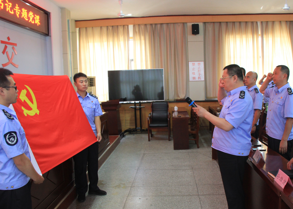 面對(duì)黨旗,公司黨委書記馬軍帶領(lǐng)全體黨員一起重溫入黨誓詞。