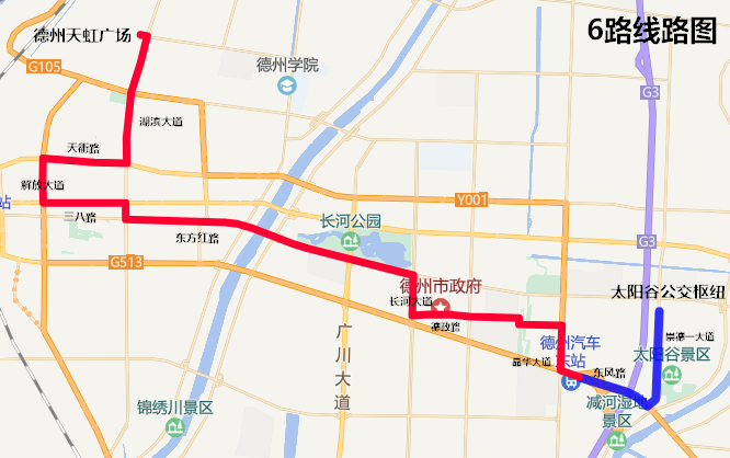 6路:德州天虹廣場 ? 太陽谷公交樞紐 方向: