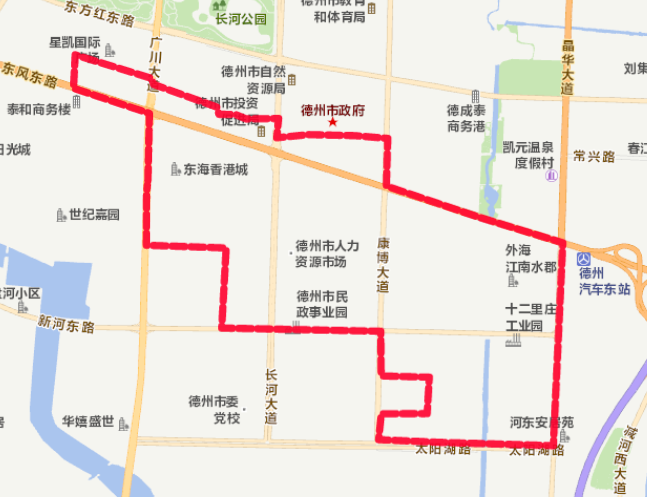 站點設(shè)置:會展中心、市政務服務中心、富豪康博大酒店、東風路康博大道、澳德樂時代廣場、江南水郡、德百批發(fā)城西門、大申莊新村、德百奧萊廣場、河東安居苑、德州市殘疾兒童康復中心、沙王小學、沙王社區(qū)、德州市第一中學東校區(qū)、社會福利中心、太陽城學校、岳莊新村、月湖公園、廣川大道國防路、東海香港城、泰和名仕港、長河小學、星凱國際南門、高地世紀城南門、趙辛中天府社區(qū)、會展中心。