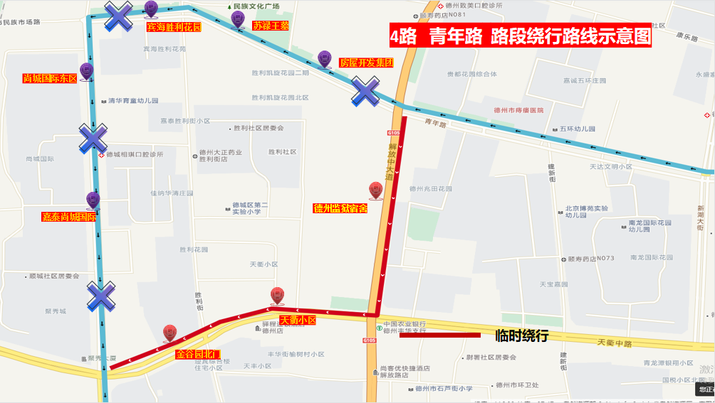 臨時新增:德州監(jiān)獄宿舍、天衢小區(qū)、金谷園北門等3站。