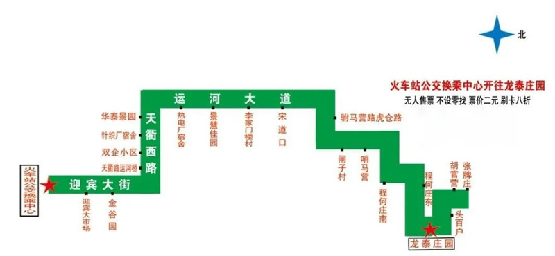 運營路線:火車站公交換乘中心、迎賓大街、天衢路、運河大道、駙馬營路、虎倉路、龍?zhí)┣f園,返程亦同;同時恢復(fù)天衢路運河橋、雙企小區(qū)、針織廠宿舍、華泰景園、熱電廠宿舍、景慧佳園、李家門樓村、宋道口、駙馬營路虎倉路等9處站點的???。