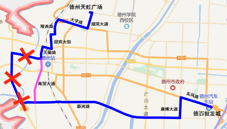 運營路線:德百批發(fā)城、東風(fēng)路、康博大道、新河路、商貿(mào)大道、天衢路、迎賓大街、青年路、陵西路、大學(xué)路、湖濱大道、德州天虹廣場;臨時取消:德州面粉廠宿舍、魏莊社區(qū)、三里莊社區(qū)、德州市第二實驗小學(xué)、嘉恒小區(qū)、帝景城家園等6站;臨時新增:鑫苑小區(qū)、鳳凰雅苑、熙鳳居、商貿(mào)大道水廠路、糧食物流中心、石家園小學(xué)、時代花園、新港灣小區(qū)、商貿(mào)大道三八西路等9站。