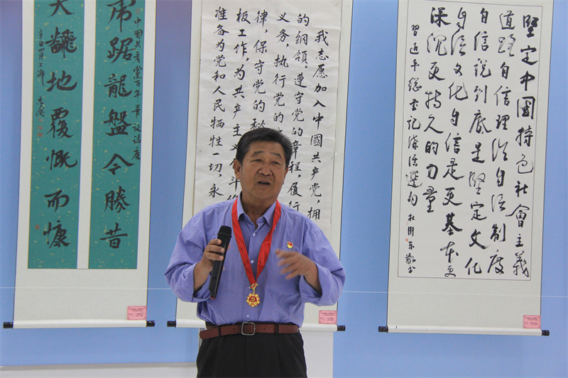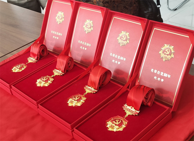 并為老黨員太樹桐同志、徐硯坤同志、李秀芹同志、張玉田同志等4位黨齡50年以上的老黨員頒發(fā)紀(jì)念章。