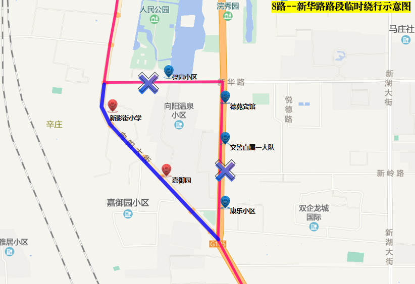 接施工單位通知,計劃于6月16日臨時封閉新華路(向陽大街至解放南大道)路面進行雨污分流工程施工。受道路施工影響,自6月16日起,公交8路臨時繞行,具體如下: