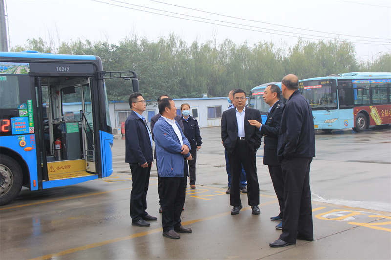 10月9日上午,省交通運(yùn)輸廳廳城市交通處副處長李光城、科長吳磊到我市調(diào)研公共交通防汛工作。市交通運(yùn)輸局局長齊永軍,副局長張金華,市城市交通科科長孟凡朝,公司黨委書記、總經(jīng)理郭輝,黨委委員、副總經(jīng)理孫培功參加。