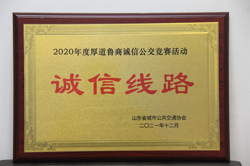 107路公交線路被評為2020年度厚道魯商誠信公交競賽活動“誠信線路”
