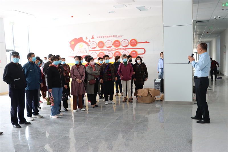 孫維健同志為退休老職工介紹辦公樓內接待室、職工餐廳餐廳、信息調度中心、職工宿舍啟用情況;