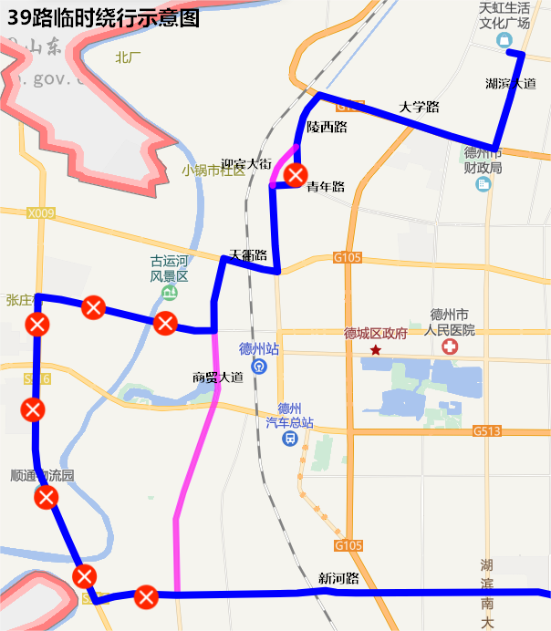 臨時取消:陵西路青年路、賓海勝利花苑、帝景城家園、嘉恒小區(qū)、德州市第二實驗小學(xué)、三里莊社區(qū)、魏莊社區(qū)、德州面粉廠宿舍等8站;