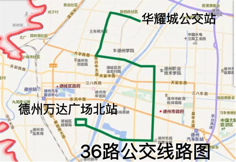 二、公交36路優(yōu)化調(diào)整,由華耀城公交站--德州萬達(dá)廣場(chǎng)北站