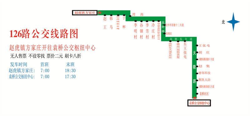 126路開通,由趙虎鎮(zhèn)方家莊開往袁橋公交樞紐中心: