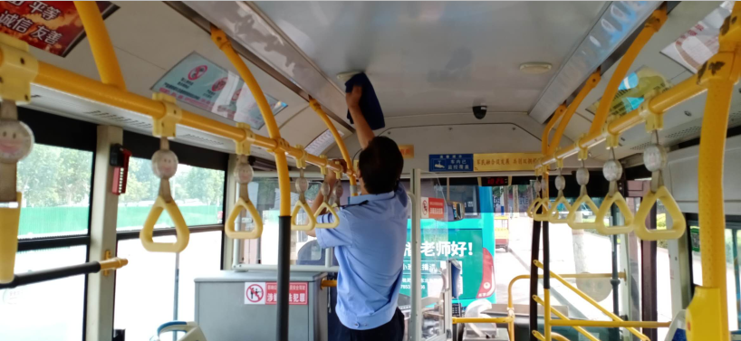 公交車駕駛員利用休息及發(fā)車前間隙,全面細(xì)致清潔車輛、清理車廂衛(wèi)生死角、清洗空調(diào)濾網(wǎng)并扎實(shí)做好防疫消毒,保障乘客出行環(huán)境更潔凈、更衛(wèi)生、更舒適,擦亮公交車這一道城市流動(dòng)的風(fēng)景線。