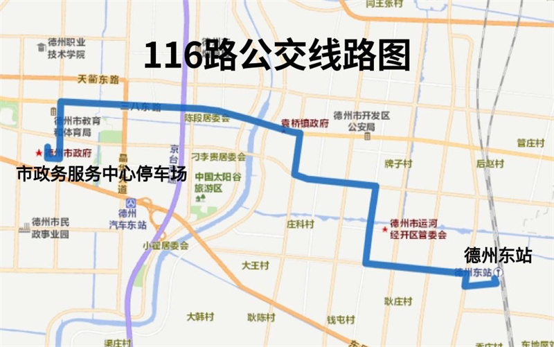 一、公交116路開通,由市政務(wù)服務(wù)中心停車場開往德州東站