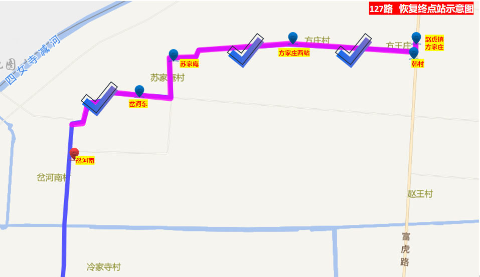同時(shí)恢復(fù):岔河?xùn)|、蘇家庵、方家莊西站、韓村、趙虎鎮(zhèn)方家莊5站的???。