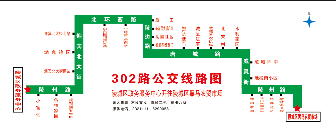 302路延伸后具體線路走向:陵城政務(wù)中心-陵州西路-迎賓北大街-北外環(huán)-陵邊路-唐城路-威靈街-陵州東路-東環(huán)北大街-陵城黑馬農(nóng)貿(mào)市場。