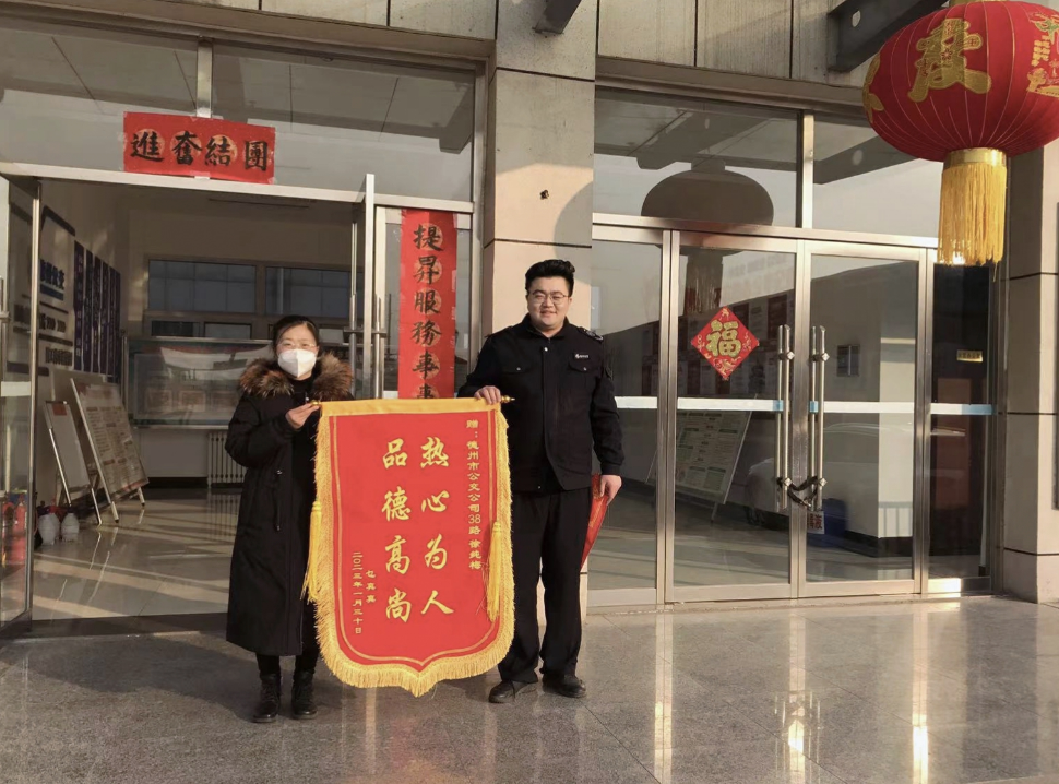 同日下午,乘客乜女士來到營運(yùn)二分公司,贊揚(yáng)和感謝38路班長徐純梅具有熱心助人的高尚品質(zhì),為徐純梅送上印有“熱心為人 品德高尚”的錦旗。同時(shí)也對公交培養(yǎng)了高素質(zhì)、高覺悟的員工進(jìn)行感謝。