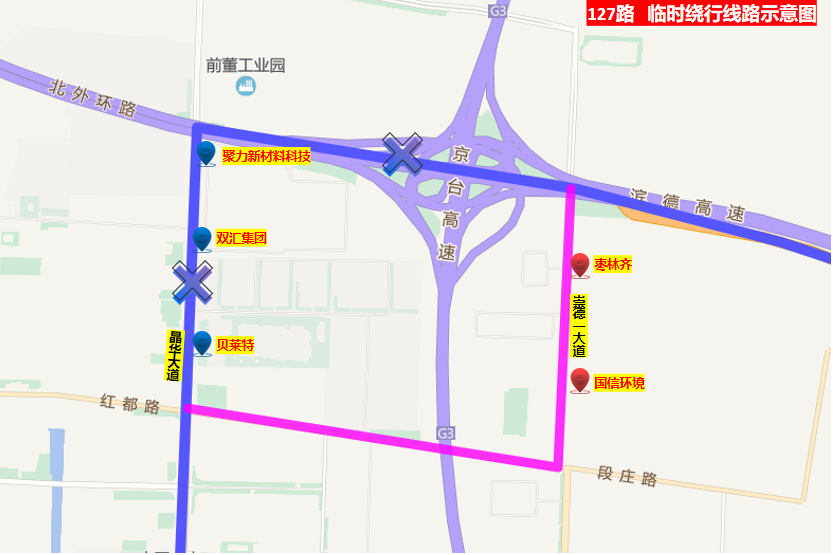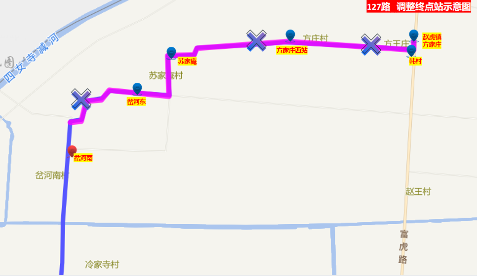 臨時(shí)取消:貝萊特、雙匯集團(tuán)、聚力新材料科技、閆王張、避雪店、西孫莊、王英、大高家店、車(chē)莊、郝莊、李牌西、李牌東、岔河?xùn)|、蘇家庵、方家莊西站、韓村、趙虎鎮(zhèn)方家莊等17站;