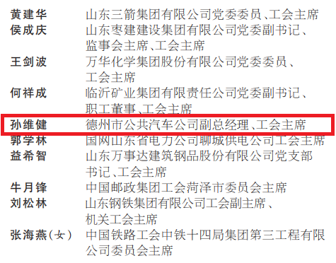 喜報!公司副總經理、工會主席孫維健榮獲2021年度山東省“十佳職工信賴的娘家人”稱號