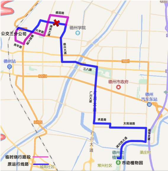 臨時取消:果園路德興大道、果園路東地北大街、德州天虹廣場、德州十中北校區(qū)、北苑新邸、綠景家園等6站;