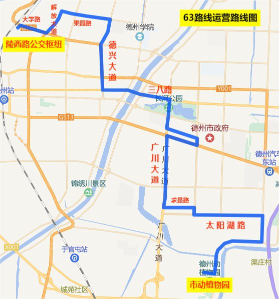 運營路線:陵西路公交樞紐、陵西路、大學路、解放大道、果園路、德興大道、三八路、廣川大道、趙辛路、長河大道、東風路、廣川大道、求是路、長河大道、太陽湖路、晶華大道、減河西大道、市動植物園,返程亦同;