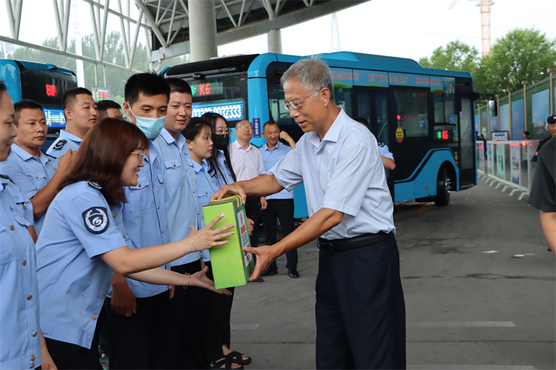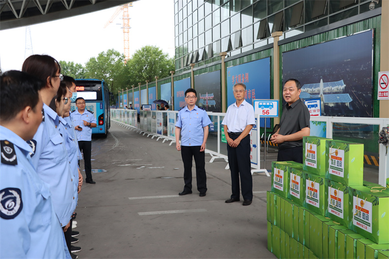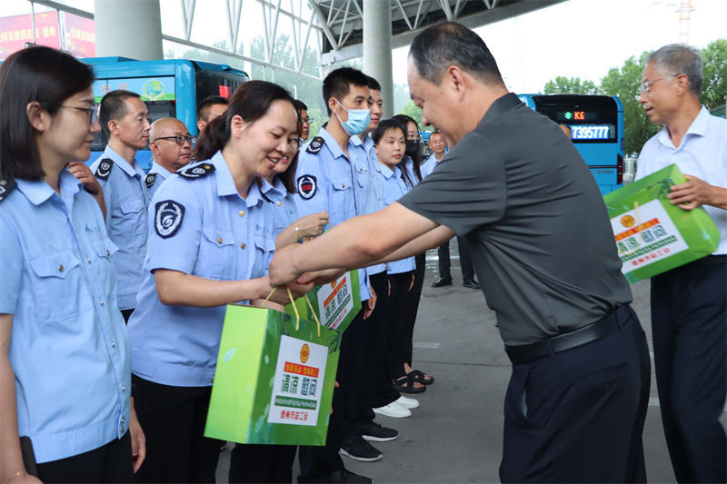 孫剛一行來(lái)到德州東站公交換乘樞紐,詳細(xì)了解公交運(yùn)營(yíng)現(xiàn)狀及駕駛員工作、生活等情況后,為運(yùn)營(yíng)一線公交職工送來(lái)帶有水杯、茶葉、毛巾、雨傘等防暑降溫的夏日“清涼包”,并一再叮囑他們?cè)谧龊米晕曳雷o(hù),保證公交運(yùn)營(yíng)安全的同時(shí),更好地服務(wù)于市民出行。