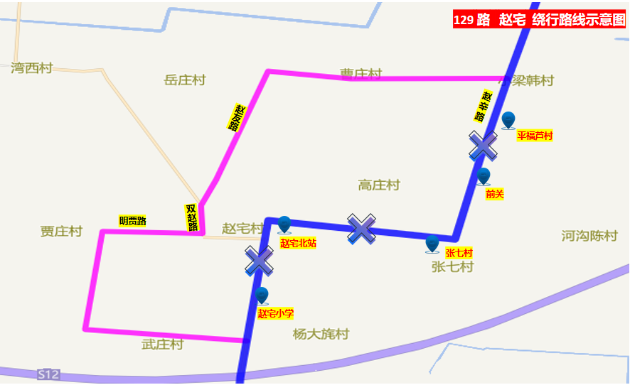 因趙宅北側(cè)道路封閉施工,車輛無法通行,調(diào)整部分運(yùn)行路段,具體如下: