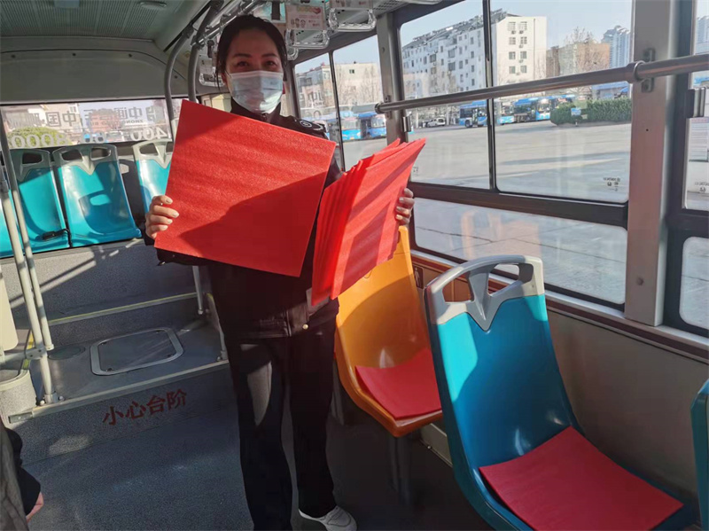 近日,市公交公司職工郭延紅為2路、6路、19路、30路自費購置了880個“暖心坐墊”,并將“暖心坐墊”一一鋪在公交車廂內(nèi)。