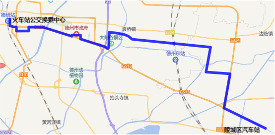 運(yùn)營路線:陵城區(qū)黑馬農(nóng)貿(mào)市場、東環(huán)南大街、陵州路、德州東環(huán)、馬頰河路、崇德十大道、德州東站、崇德十大道、尚德十一路、崇德八大道、東風(fēng)東路、康博大道、德政路、市政務(wù)服務(wù)中心停車場;