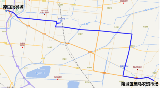 運(yùn)營路線:德百批發(fā)城、東風(fēng)路、尚德十一路、崇德十大道、德州東站、崇德十大道、馬頰河路、福星街、南環(huán)東路、東環(huán)南大街、陵城區(qū)黑馬農(nóng)貿(mào)市場,返程亦同;