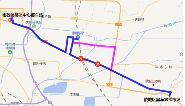 市政務(wù)服務(wù)中心停車場 至 陵城區(qū)黑馬農(nóng)貿(mào)市場 方向: