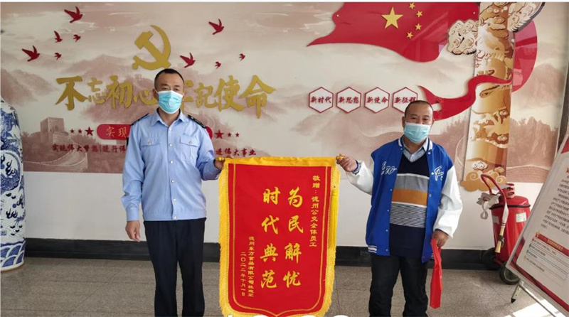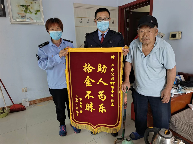 二分公司128路車長張東在運(yùn)營途中撿到乘客遺忘在車上的現(xiàn)金,張東看到后第一時間替失主保管好并及時將乘客刷卡信息報(bào)告分公司,后經(jīng)分公司辦公室人員、信息中心董祥靜、一分公司吳紅菊接力最終成功聯(lián)系到失主郭先生,由于郭先生行動不便,在和郭先生提前溝通好后,于今天前往郭先生家中將現(xiàn)金如數(shù)交還。失主郭先生核實(shí)認(rèn)領(lǐng)后當(dāng)即要拿出現(xiàn)金和茶葉表示感謝,工作人員婉拒后又拿出特意制作的錦旗來贊揚(yáng)車長張東拾金不昧的高尚品質(zhì)。