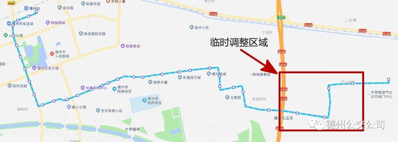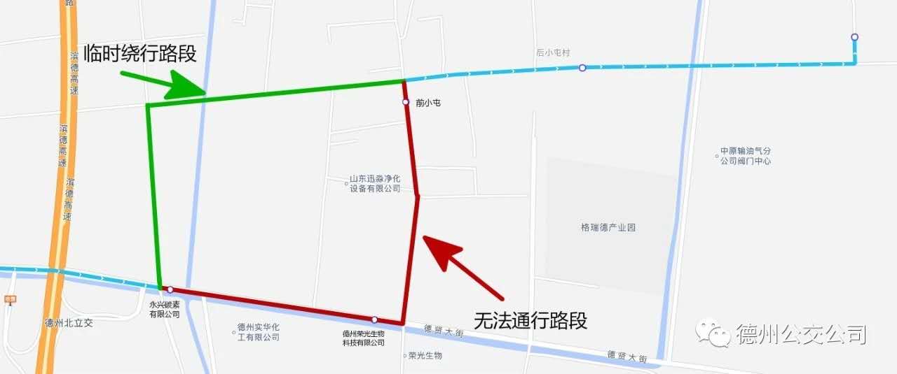 由于天衢工業(yè)園前小屯東西大街道路施工,16路線公交車無法通行,臨時調(diào)整16路線由火車站公交換乘中心沿迎賓大道、東風(fēng)路、德興大道、格瑞德路、德賢大街至永興碳素北側(cè)恒東路至前小屯至后小屯至御園社區(qū)原線路運行,取消站點德州榮光生物科技有限公司、前小屯。