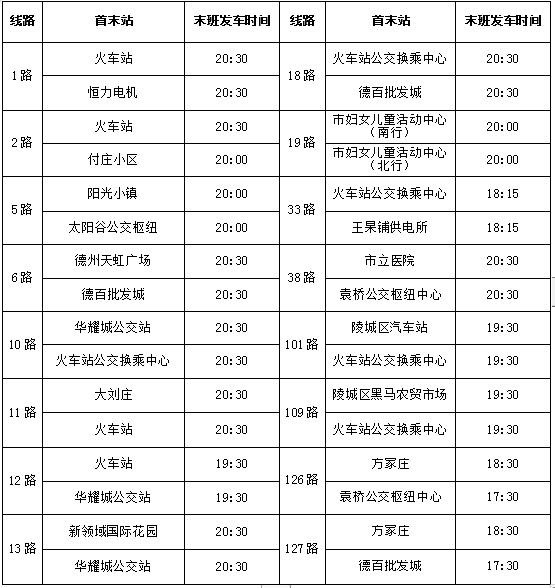 陵城東方城鄉(xiāng)公交公司線路夏季運(yùn)營(yíng)時(shí)間調(diào)整情況如下: