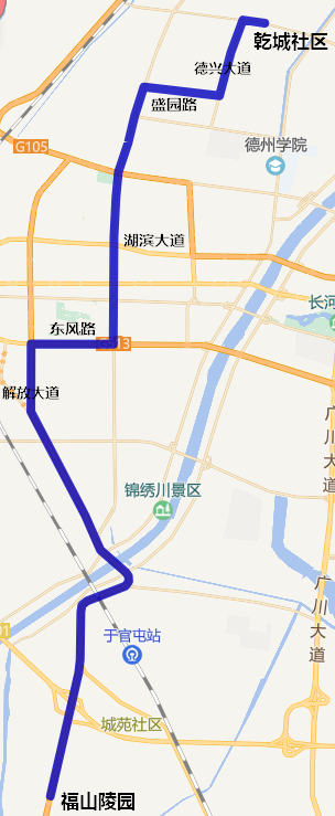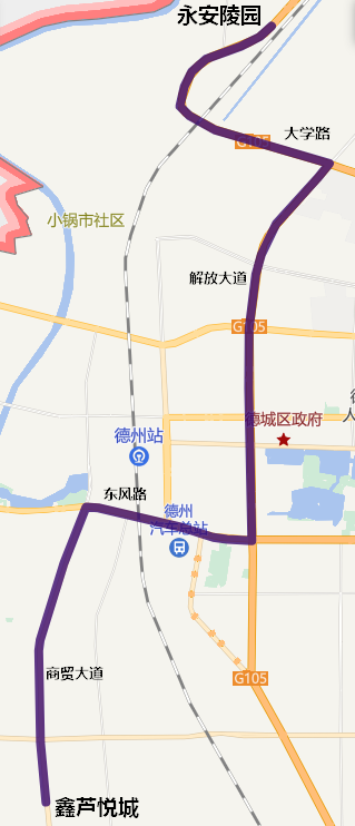 途經(jīng)主要站點:鑫蘆悅城、鑫苑小區(qū)、鳳凰雅苑、熙鳳居、汽車總站、人民公園、德州監(jiān)獄宿舍、貴都花園、北園便民市場等。