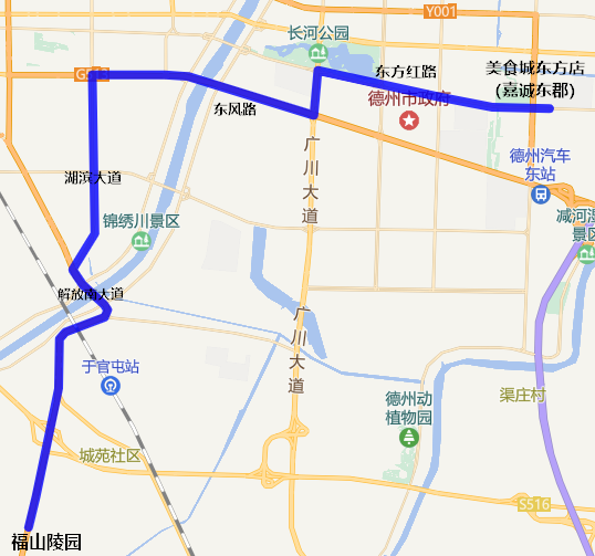 運營路線:美食城東方店(嘉誠東郡)、東方紅路、廣川大道、東風(fēng)路、湖濱大道、解放南大道、福山陵園。