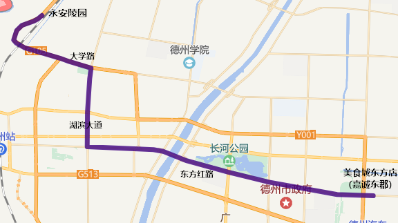 途經(jīng)主要站點:美食城東方店、董子文化街躍華中學(xué)、山東旭日、高地世紀(jì)城、唐人公館南門、東方家園、德州市第二中學(xué)北門、扒雞美食城西站、市婦女兒童活動中心等。
