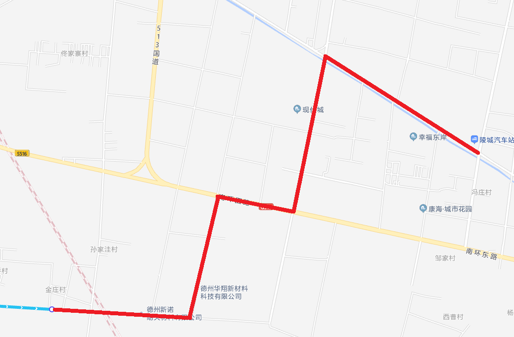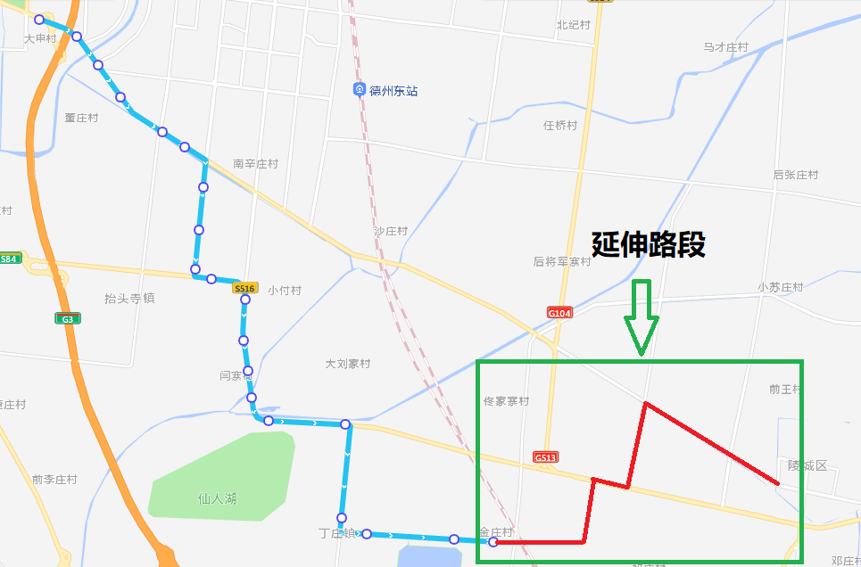 化調(diào)整后線路走向:德百批發(fā)城—東風東路—崇德五大道—德州南環(huán)—向陽街—丁莊鎮(zhèn)—后王社區(qū)—丁東路—興國街(鬲津湖城市休閑公園)—陵城南環(huán)—迎賓南大街—陵州路—陵城區(qū)汽車站。站點設(shè)置:德百批發(fā)城、中國太陽谷、減河濕地風景區(qū)東風路站、億晶能源科技、東風東路崇德三大道、東風東路崇德四大道、孫莊、雙廟陳、文莊、滿莊、張申、吳寨、閆寨、大薛莊社區(qū)、仙人湖、丁莊向陽街北路口、丁莊鎮(zhèn)中心小學、丁莊中心站、丁莊、丁莊鎮(zhèn)中心幼兒園、丁東水庫、許橋村、金莊社區(qū)、德州新諾耐火材料有限公司、佳納工業(yè)園、鬲津湖城市休閑公園、鬲津橋、幸福春天、和園小區(qū)、陵城一中、第四實驗小學、蘆家坊村、幸福東岸、陵城區(qū)汽車站等34處站點。