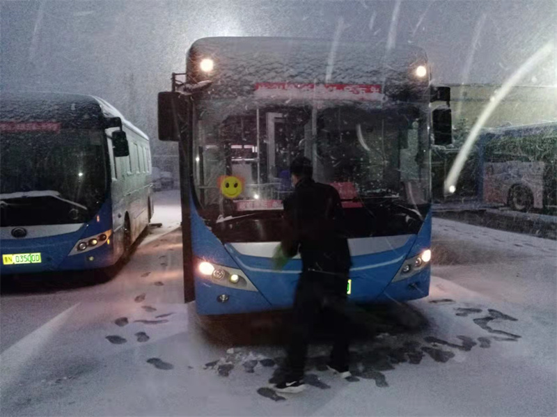 一線駕駛?cè)藛T早上提前到崗,預(yù)熱車(chē)輛,清掃玻璃積雪,做好車(chē)輛“三檢”工作,保證車(chē)輛準(zhǔn)時(shí)準(zhǔn)點(diǎn)發(fā)車(chē)。